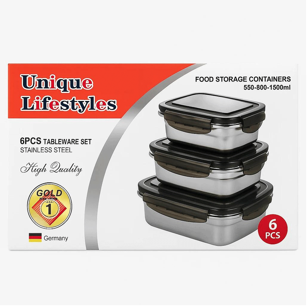 هر ست شامل سه عدد ظرف در اندازه‌های ۵۵۰، ۹۰۰ و ۱۵۰۰ میلی‌لیتر است که به‌راحتی داخل هم قرار می‌گیرند و فضای کمی در کابینت یا یخچال اشغال می‌کنند.